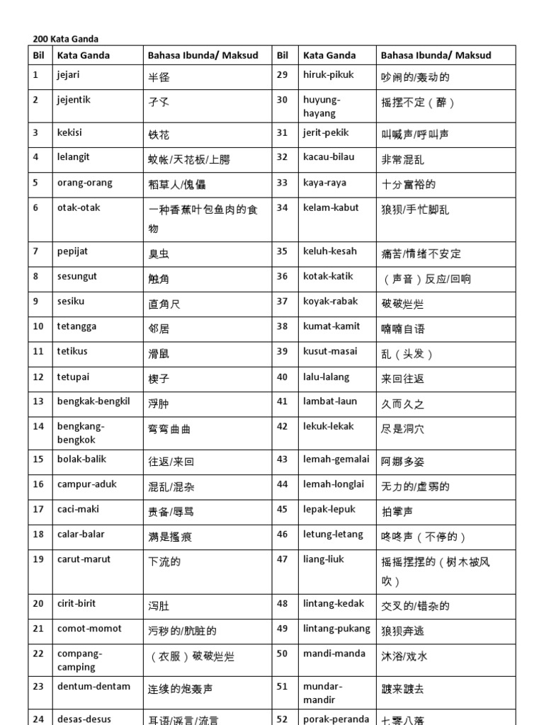 Kamus Kata Ganda Berirama Berentak Pdf Tatabahasa Kata Ganda Berirama V Bil Kertas 1 Kata Ganda Maksud 1 Anak Pinak Anak Beranak 2 Basa Basi Adat Course Hero